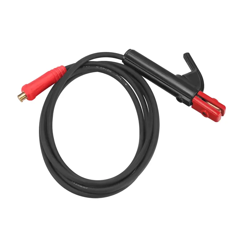 3 متر × 20 میلیمتر کابل CCA, یک عدد انبر 300 آمپر, 2 متر × 20 میلیمتر کابل CCA, یک عدد انبراتصال 300 آمپر, یک عدد ماسک, یک عدد برس سیمی, یک عدد بند