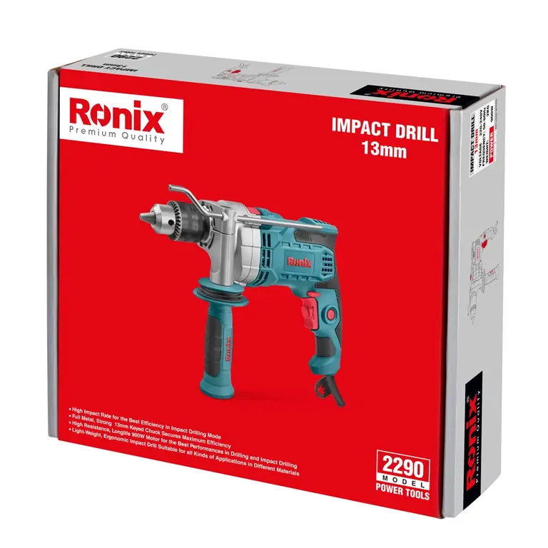 ویژگیها دارای سه نظام آچاری 13 میلیمتری تمام فلزی، بسیار مستحکم و قوی مجهز به موتور قدرتمند900 واتی باکیفیت و با طول عمر بالا برای بهترین عملکرد در حالت سوراخکاری و سوراخکاری چکشی دارای بدنه ارگونومیک با وزن مناسب جهت استفاده های طولانی مدت و کار بر روی متریال مختلف نرخ ضربه بالا برای بهترین کارایی در حالت چکشی دسته جانبی ارگونومیک با چرخش 360 درجه انتقال لرزش را به حداقل می رساند و در کار مداوم خستگی کاربر را کاهش میدهد. قابلیت تنظیم و کنترل سرعت دریل که مناسب برای کار بر روی انواع مختلفی از مواد می باشد قابلیت چرخش چپگرد و راستگرد مجهز به میله تنظیم عمق سوراخکاری