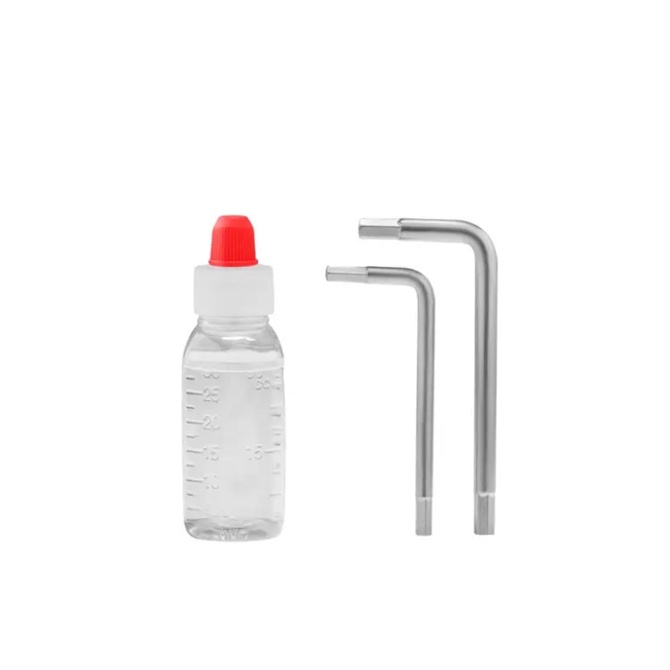 آچار 4 و 5 میلیمتر، بطری روغن 30 میلی لیتری، شلنگ 10 متری