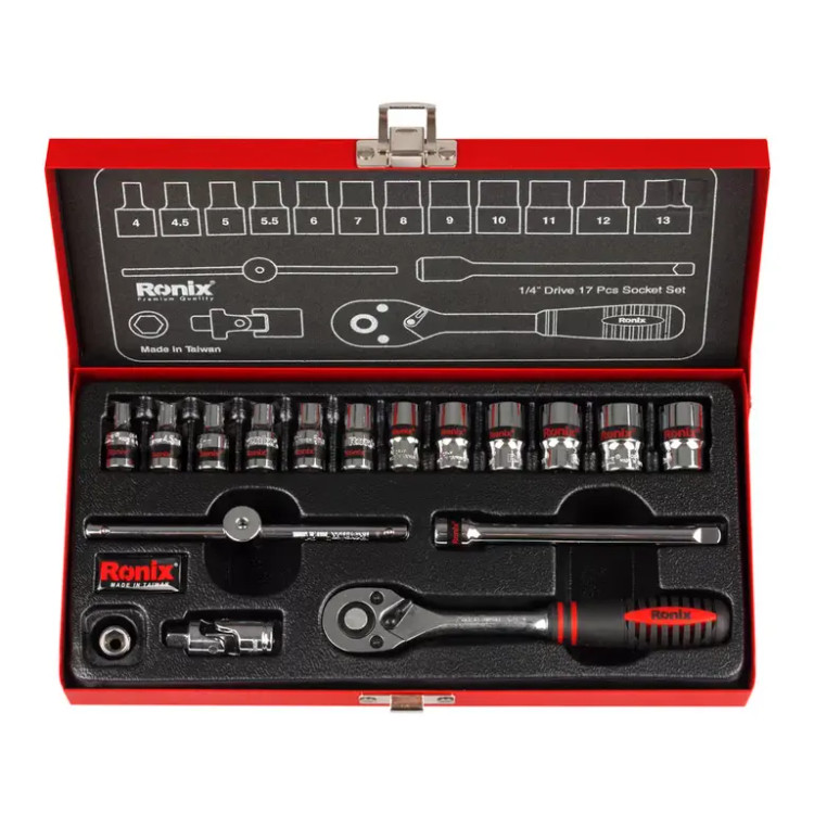 جعبه بکسی شامل 17 قطعه 1/4 اینچی