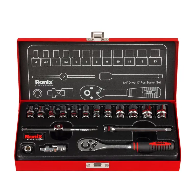 جعبه بکسی شامل 17 قطعه 1/4 اینچی